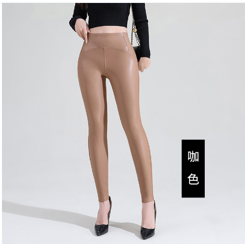 📚 网红PU打底加绒女长裤修身高腰时尚薄绒白色洋气水洗绵阳紧身皮裤