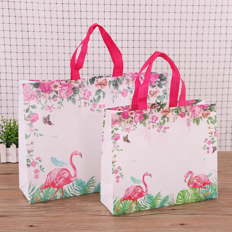 📚 手提袋礼品袋时尚女装袋现货袋子火烈鸟无纺布购物袋覆膜环保服装