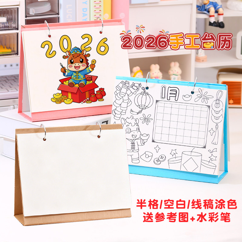 📚 2026空白台历diy日历手工材料包自制线稿小学生儿童手绘马年作业