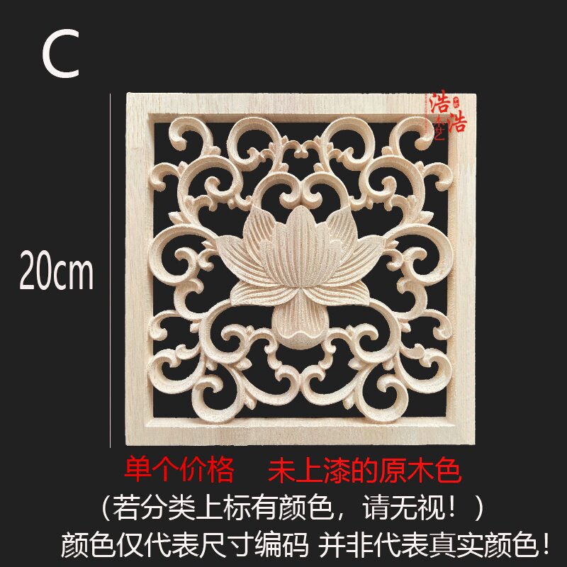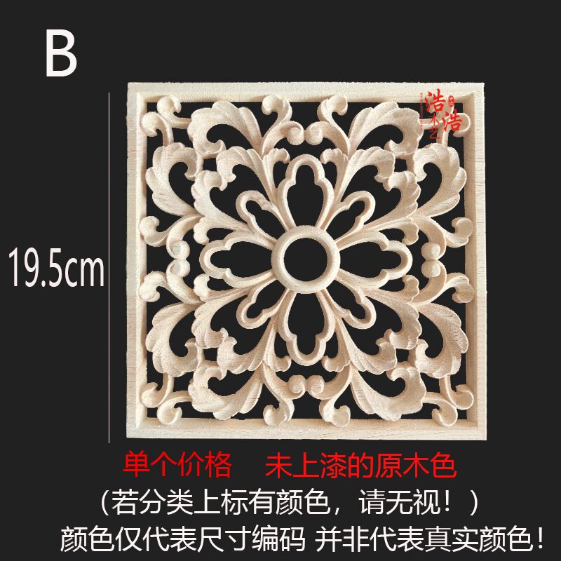 📚 东阳木雕花片小方块家具精雕木花片实木贴花方形木雕花罗马柱柱头