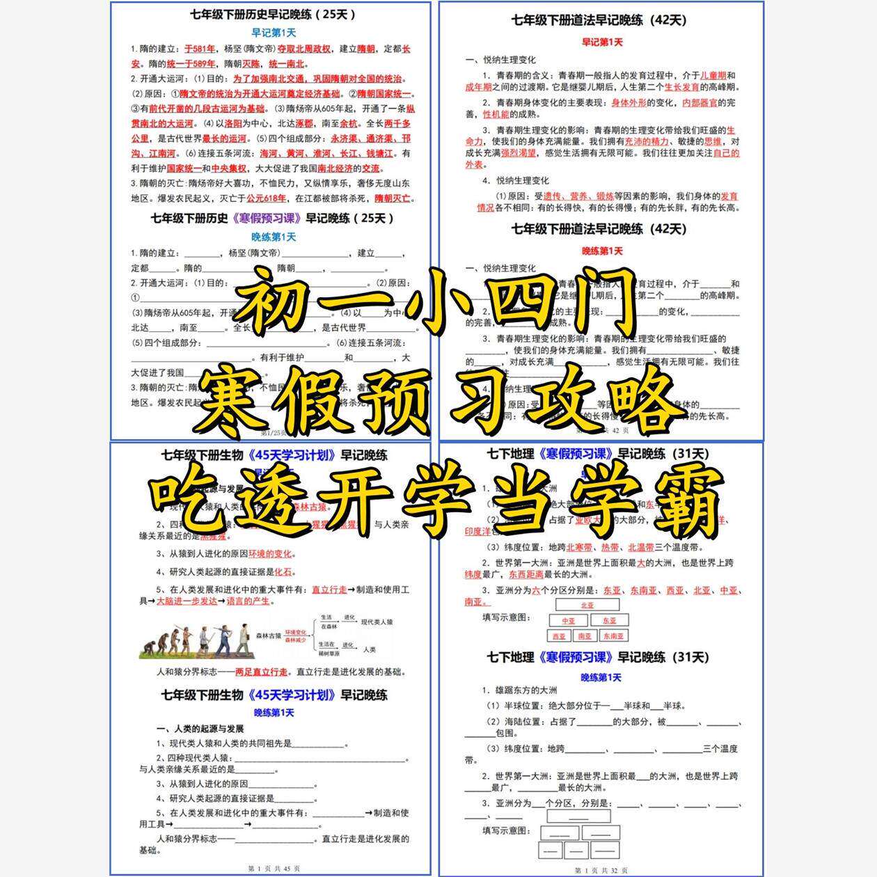 📚 2025新版国一下册小四门晨读晚默知识点寒假预习课作业学生作业