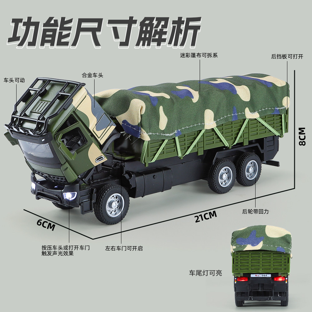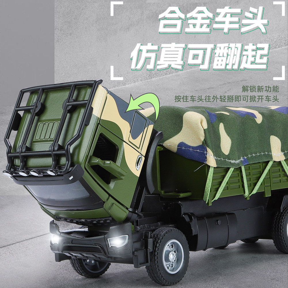 📚 合金军事运输车卡车模型仿真运兵车带棚军车儿童男孩玩具摆件金属