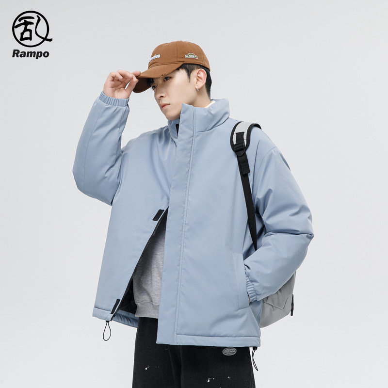 📚 国潮牌开衫棉衣男装纯色潮男外套冬季新款加厚保暖立领宽松棉服男