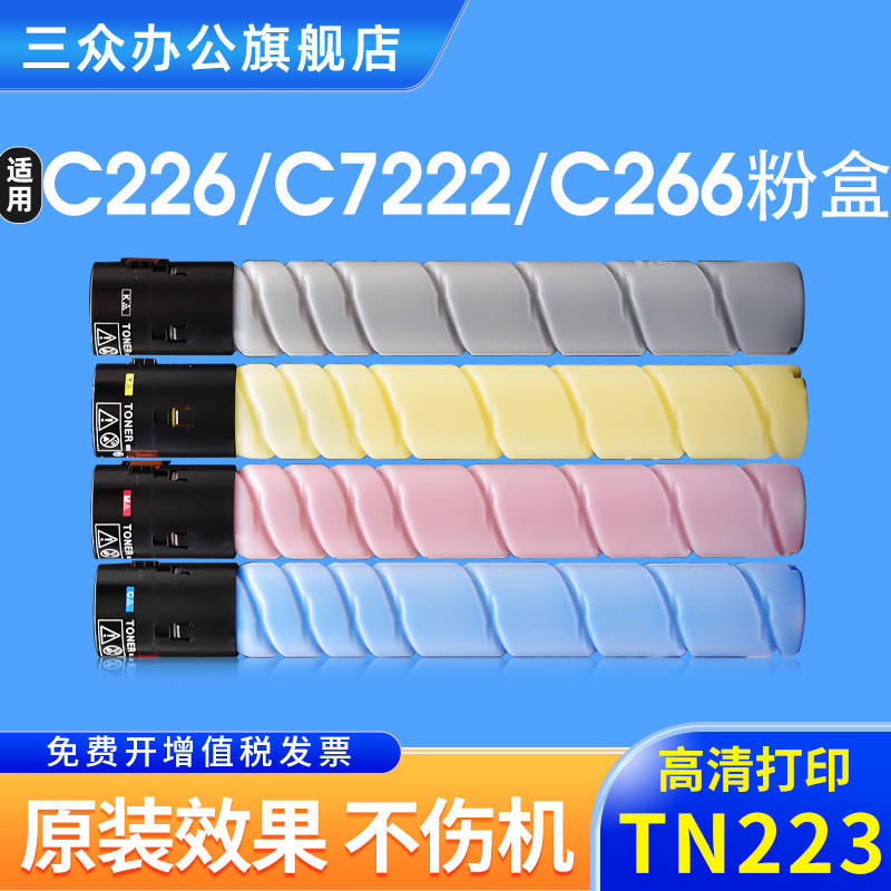 📚 适用柯尼卡美能达C226粉盒TN223墨粉盒C256 C266碳粉KonicaMinoltaBizhub C7222 C7226复印机粉盒TN223墨盒