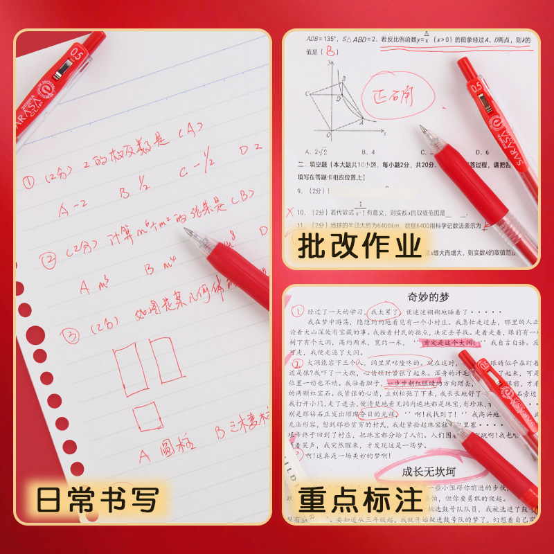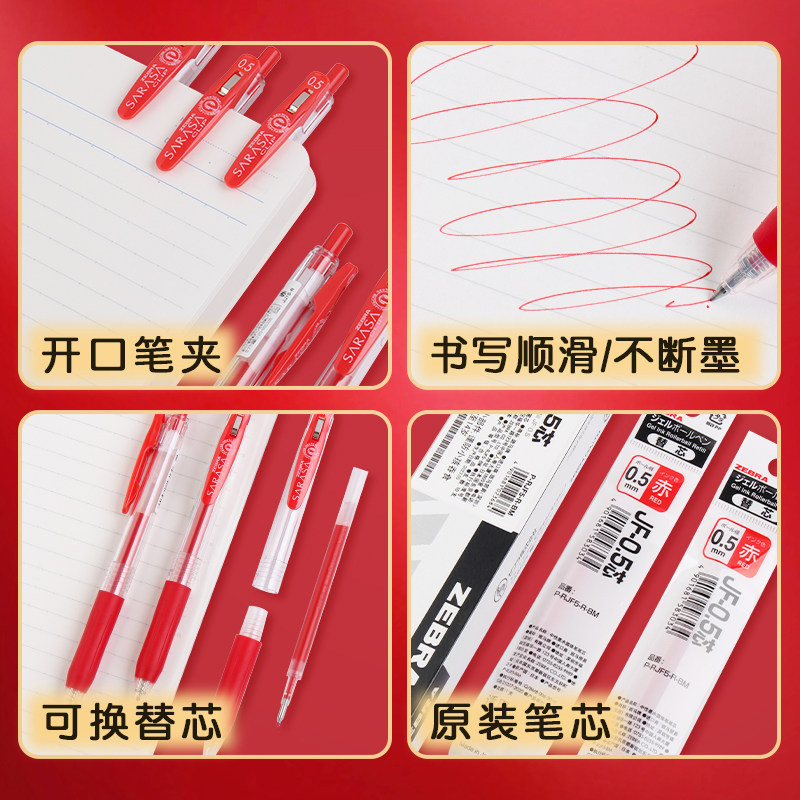 📚 【斑马JJ15红笔】日本zebra斑马JJ15速干红色中性笔JF0.5笔芯老师推荐批改标记红蓝黑色按动水笔学生考试笔芯