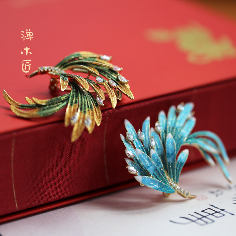 📚 禅木匠【有凤来仪】古法珐琅彩古风凤凰毛衣中国风汉服国潮胸针