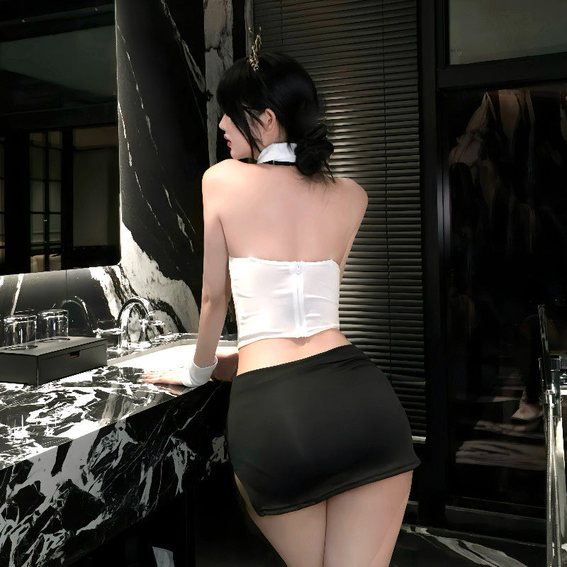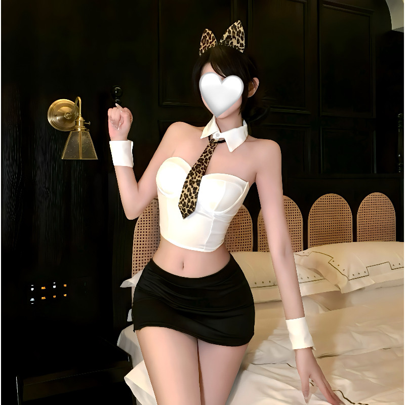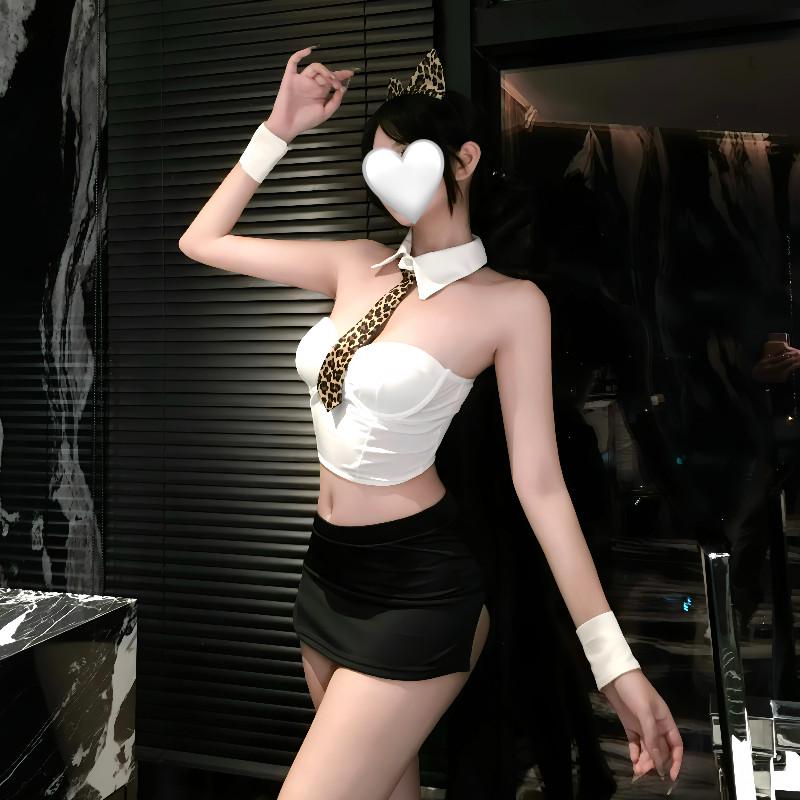📚 美式辣妹豹纹领带抹胸吊带背心居家直播服OL秘书职业装套装qqny