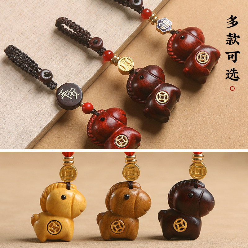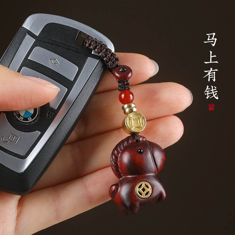 📚 马年马上有钱檀木钥匙扣汽车挂件生肖小马本命年男高档包挂饰吊坠