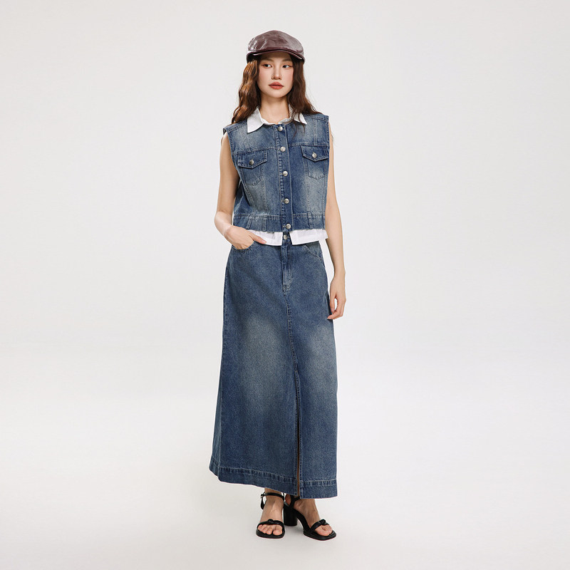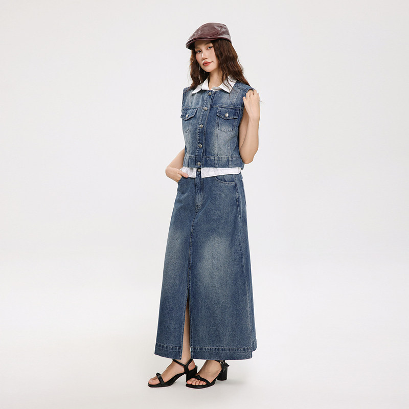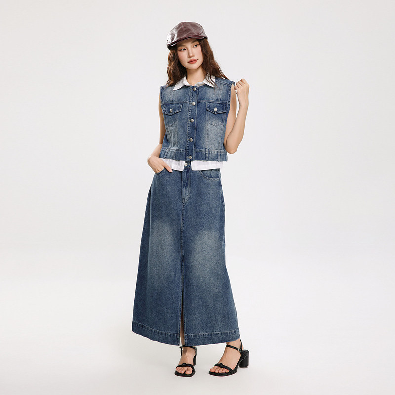 📚 记忆的起点牛仔套装拼接马甲半身裙两件套2025夏季新款69AX82512