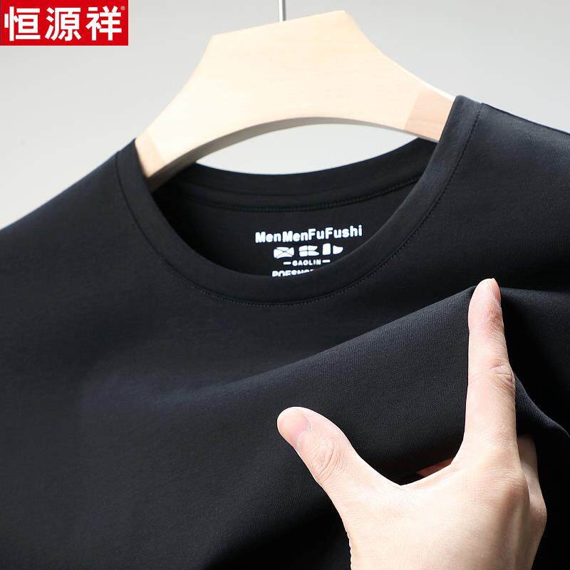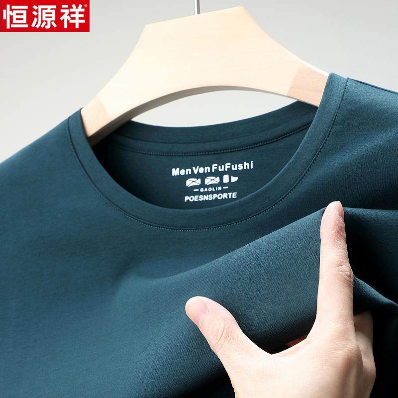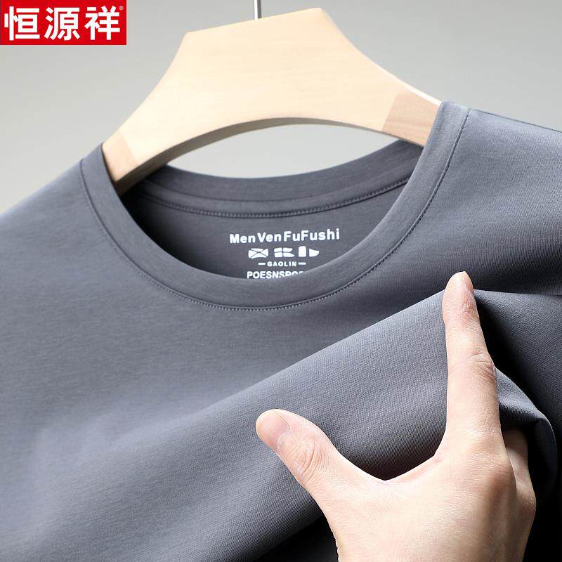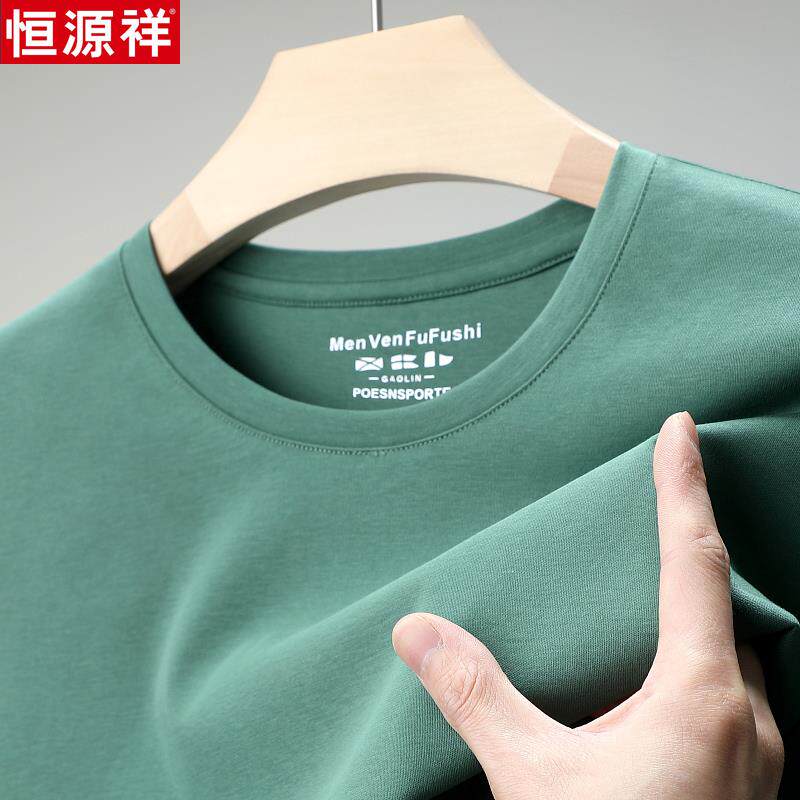📚 恒源祥男士短袖T恤圆领100纯棉双丝光棉夏季新款纯色宽松男装体恤