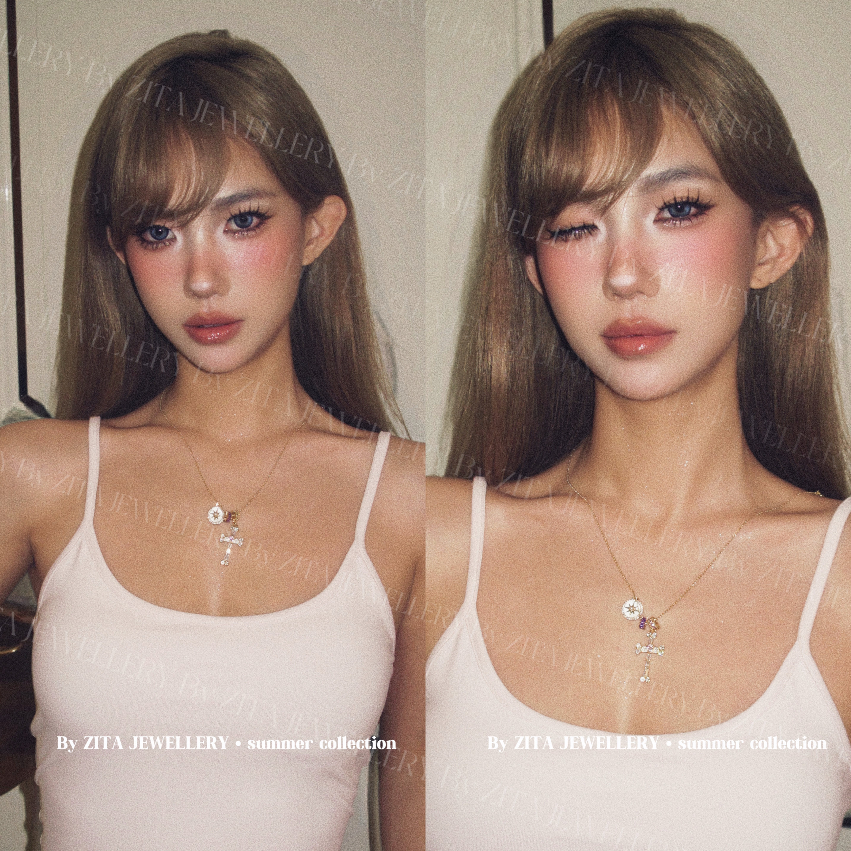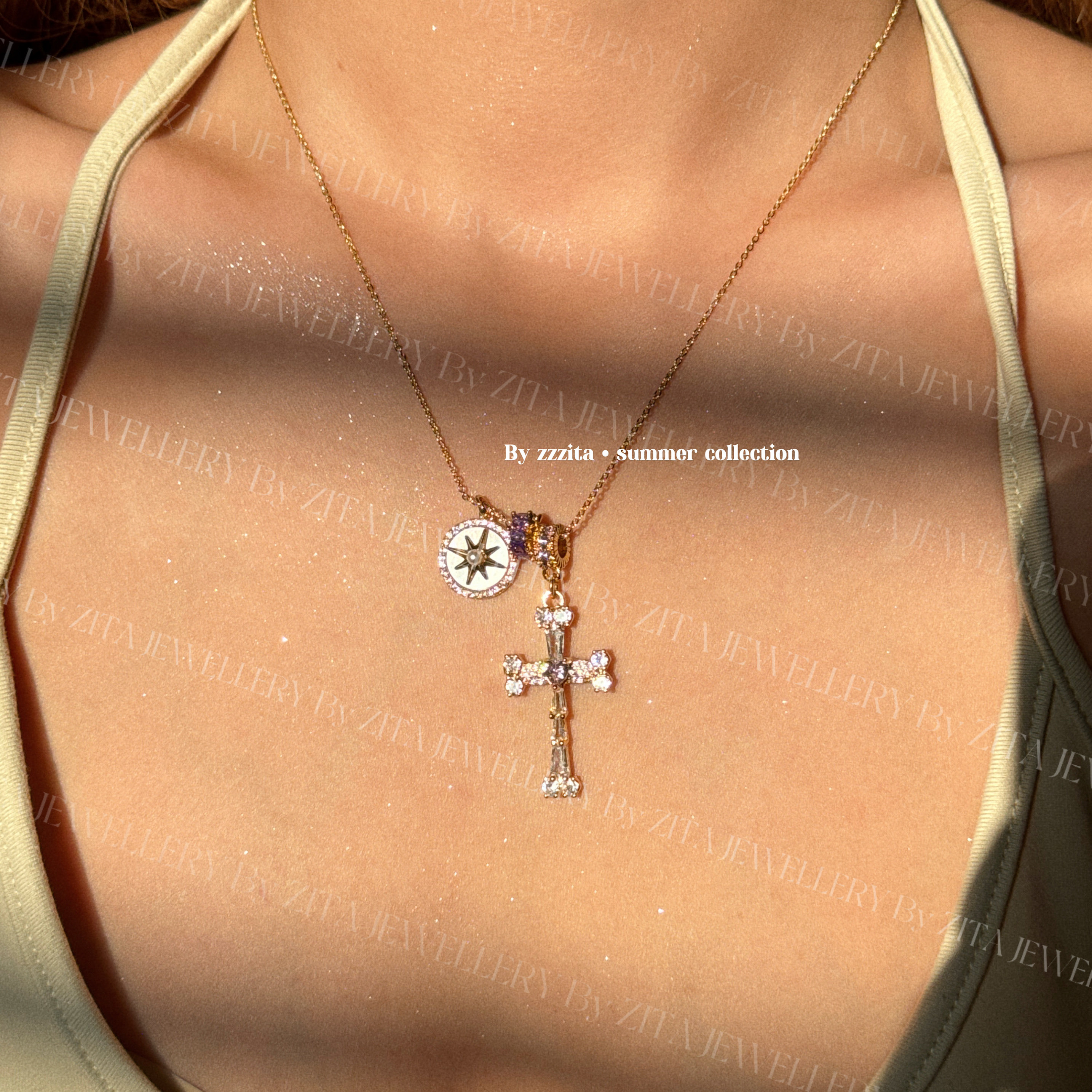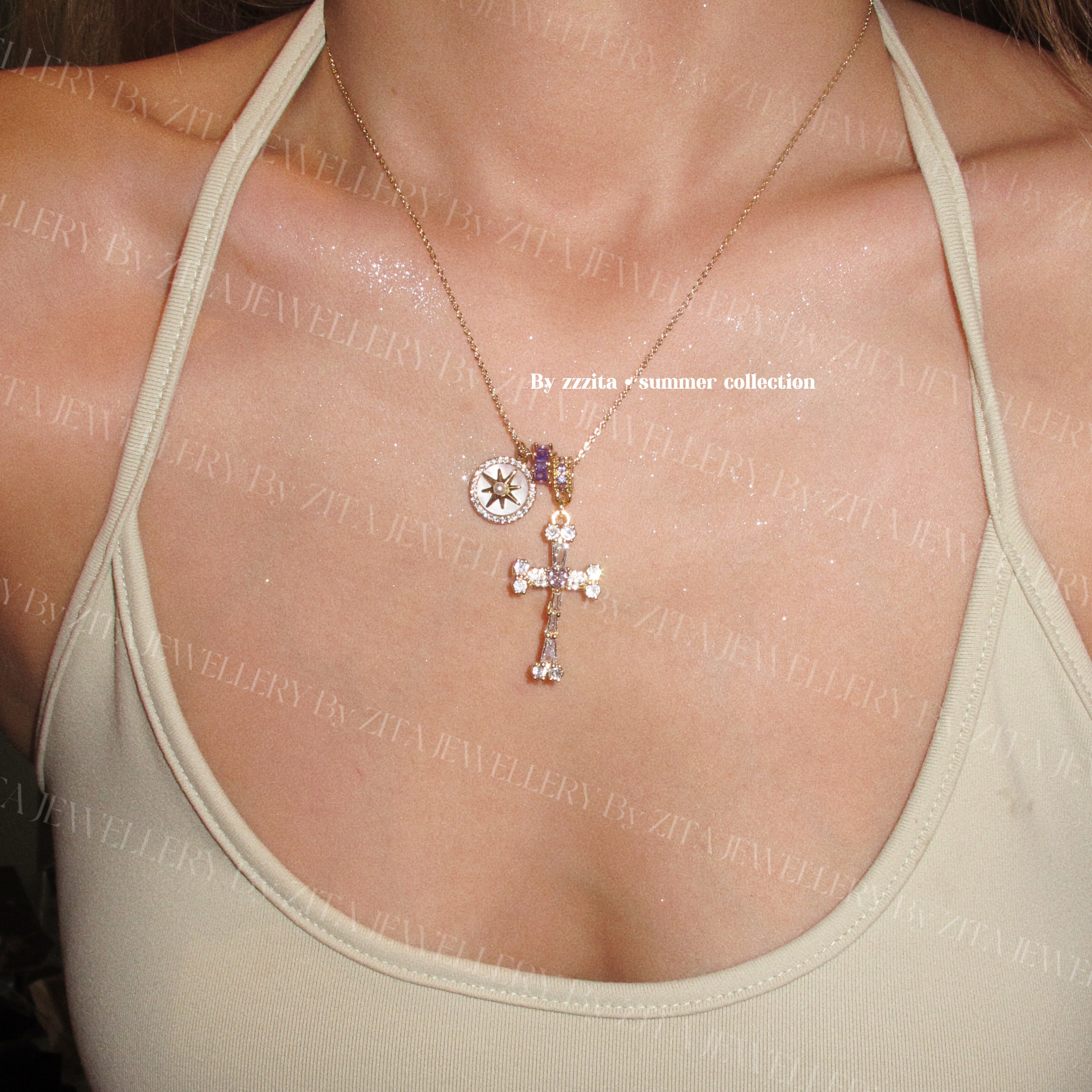 📚 ZZZITA 无畏之星·Fearless Heart~闪钻八芒星紫粉钻十字架项链