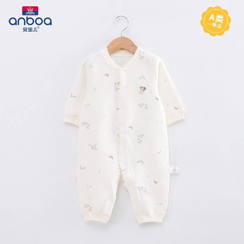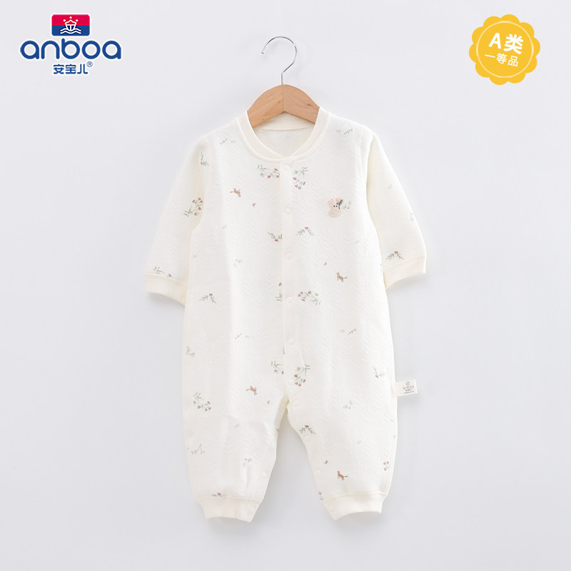 📚 安宝儿婴儿连体衣秋冬夹丝纯棉保暖新生儿衣服女宝宝哈衣爬服睡衣
