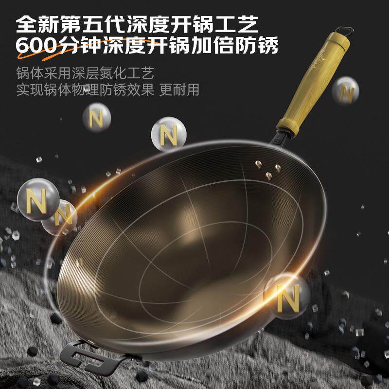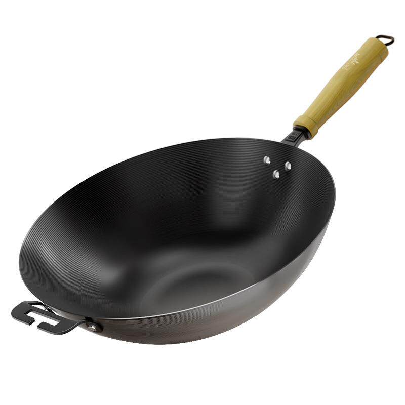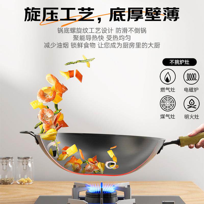 📚 古臻匠精铁锅厨房炒菜锅圆底熟铁炒锅家用无涂层螺旋纹铁锅免开锅
