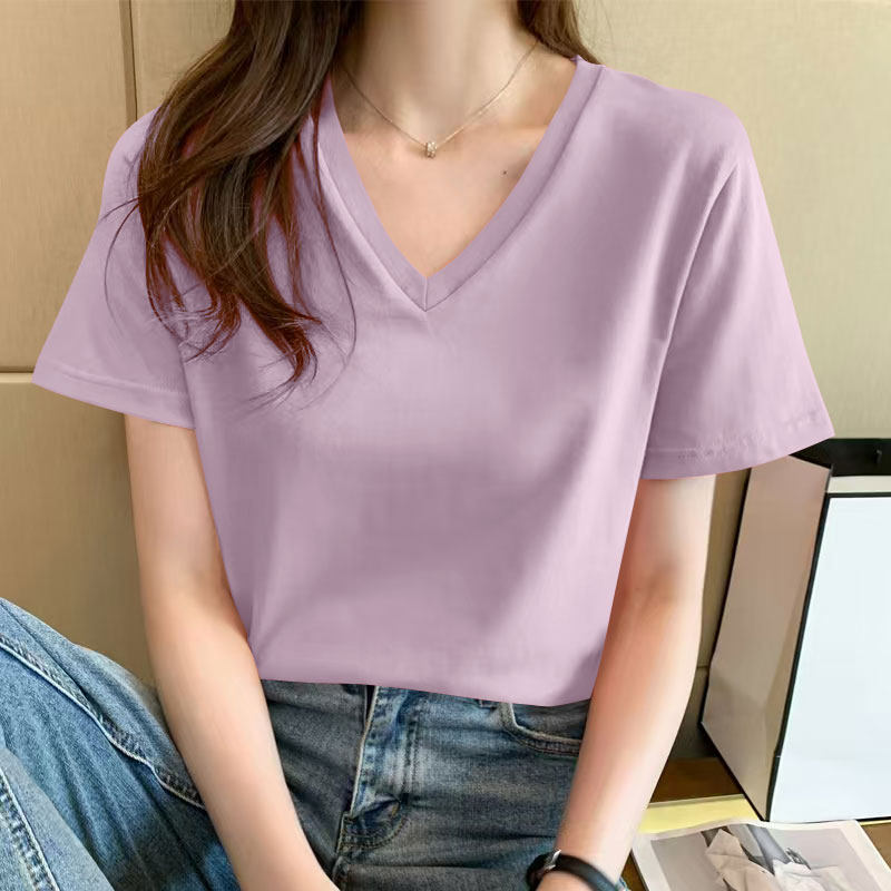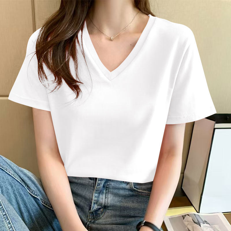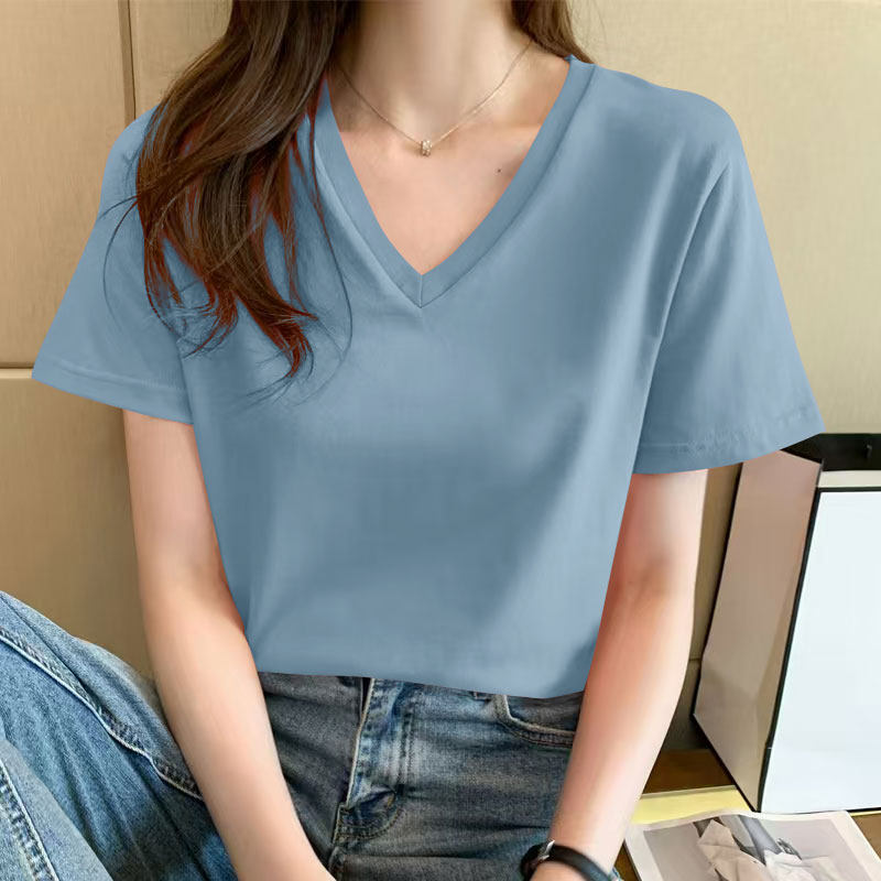 📚 纯棉短袖t恤女夏季时尚休闲百搭简约纯色V领显瘦宽松设计感上衣女