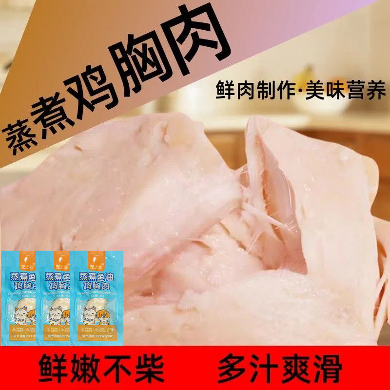 📚 蒸煮猫咪鱼油鸡胸肉鸡小胸零食宠物猫饭湿粮试吃装宠物零食湿粮包