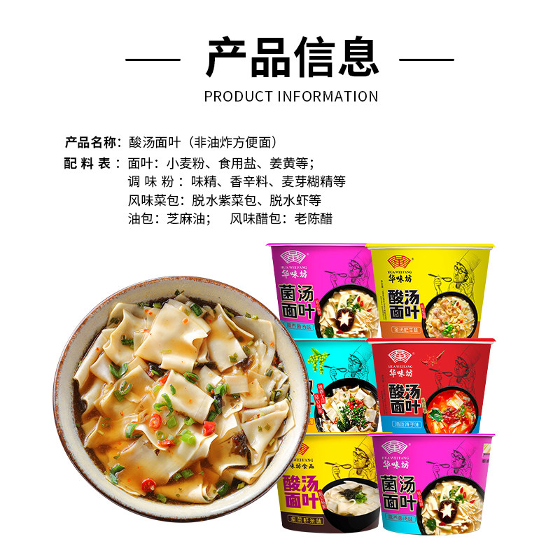 📚 华味坊酸汤面叶紫菜虾米金汤肥牛面片整箱早餐方便面速食泡面桶装