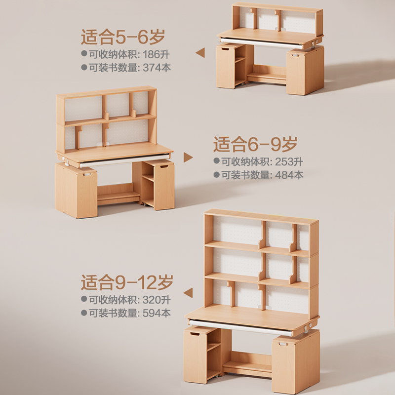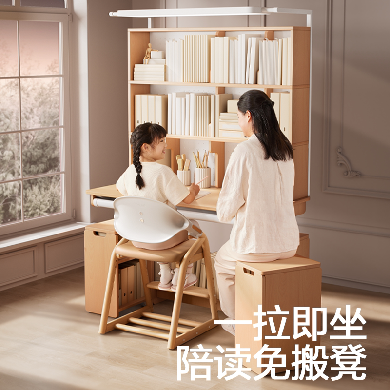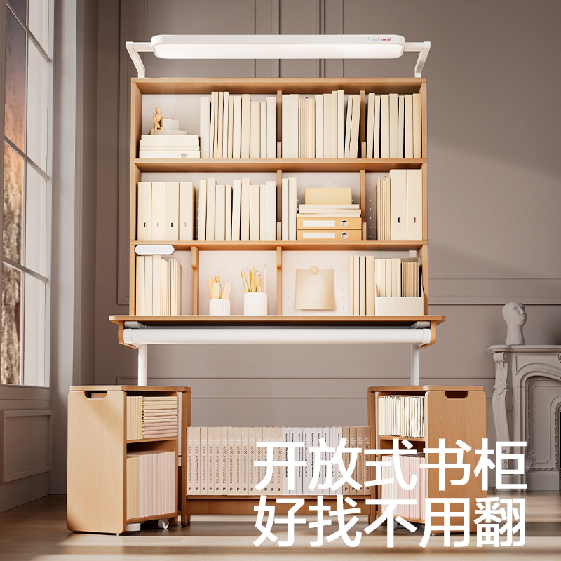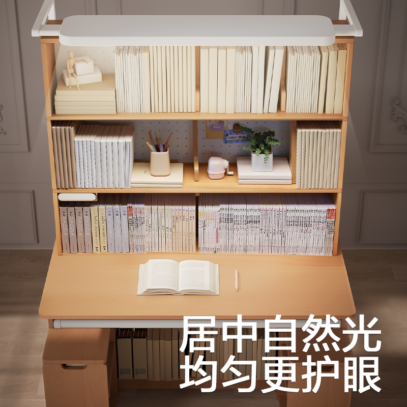 📚 育才儿童学习桌书桌一体灯可升降小学生家用实木风写字桌百宝书案
