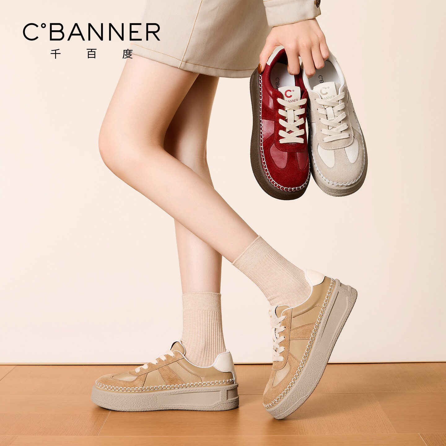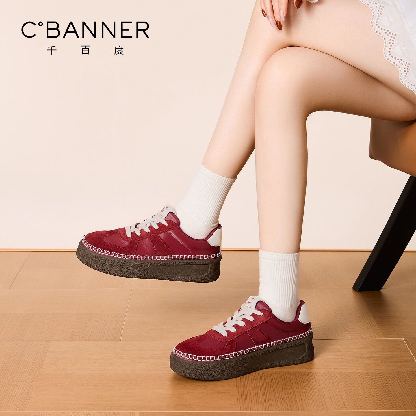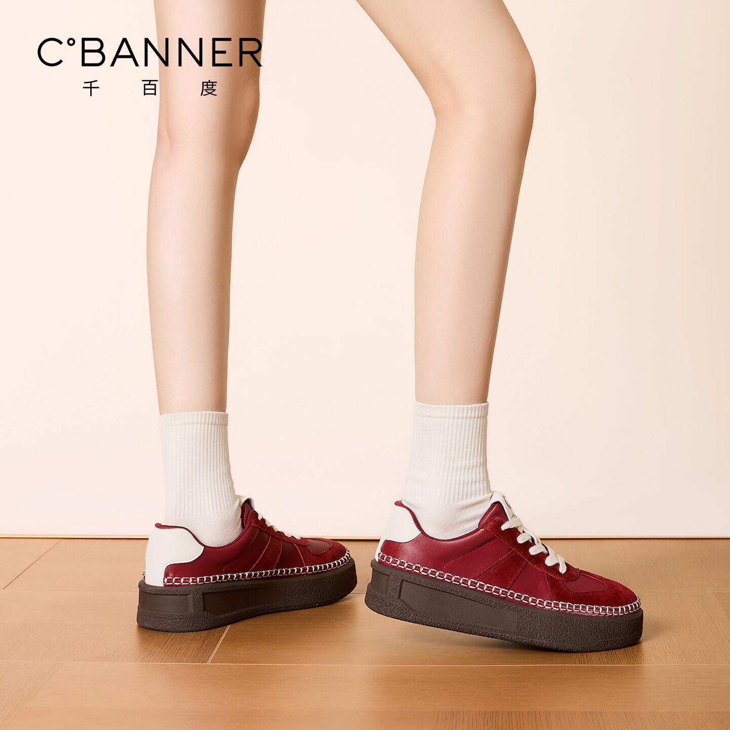 📚 千百度厚底德训鞋女2026春季新款百搭增高女鞋运动休闲鞋低帮板鞋
