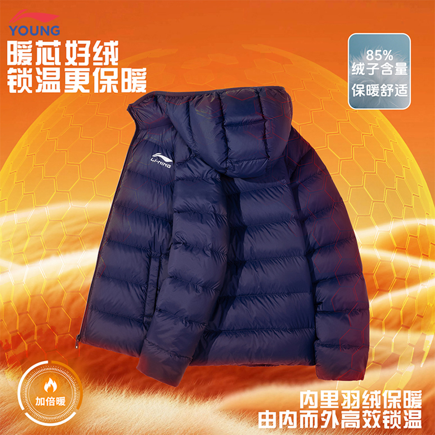 📚 李宁26年新年男女童鸭绒排骨羽绒服儿童马年过年保暖防风拉链外套