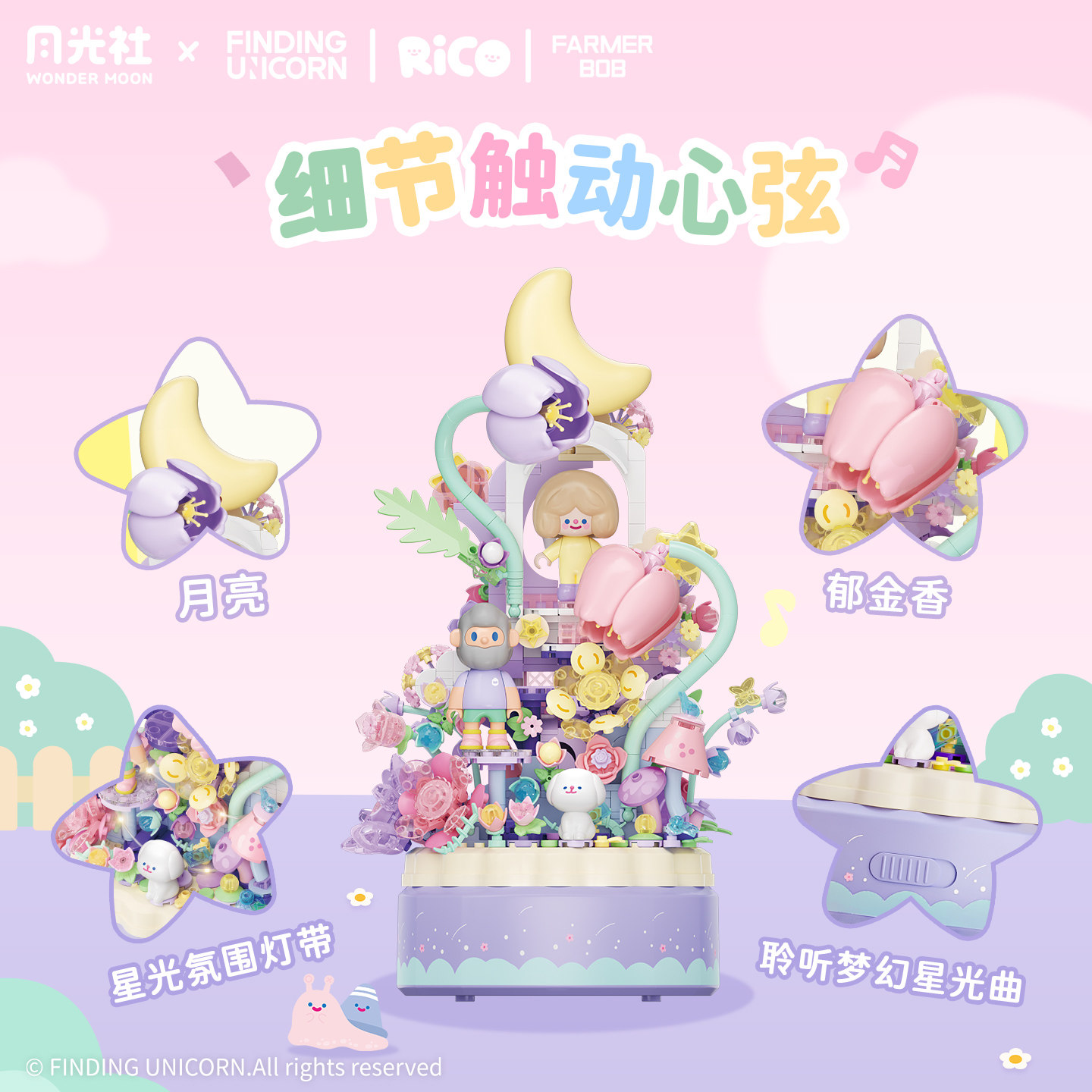📚 寻找独角兽 FARMER BOB&RiCO花间奇遇音乐盒拼装积木摆件送礼休闲