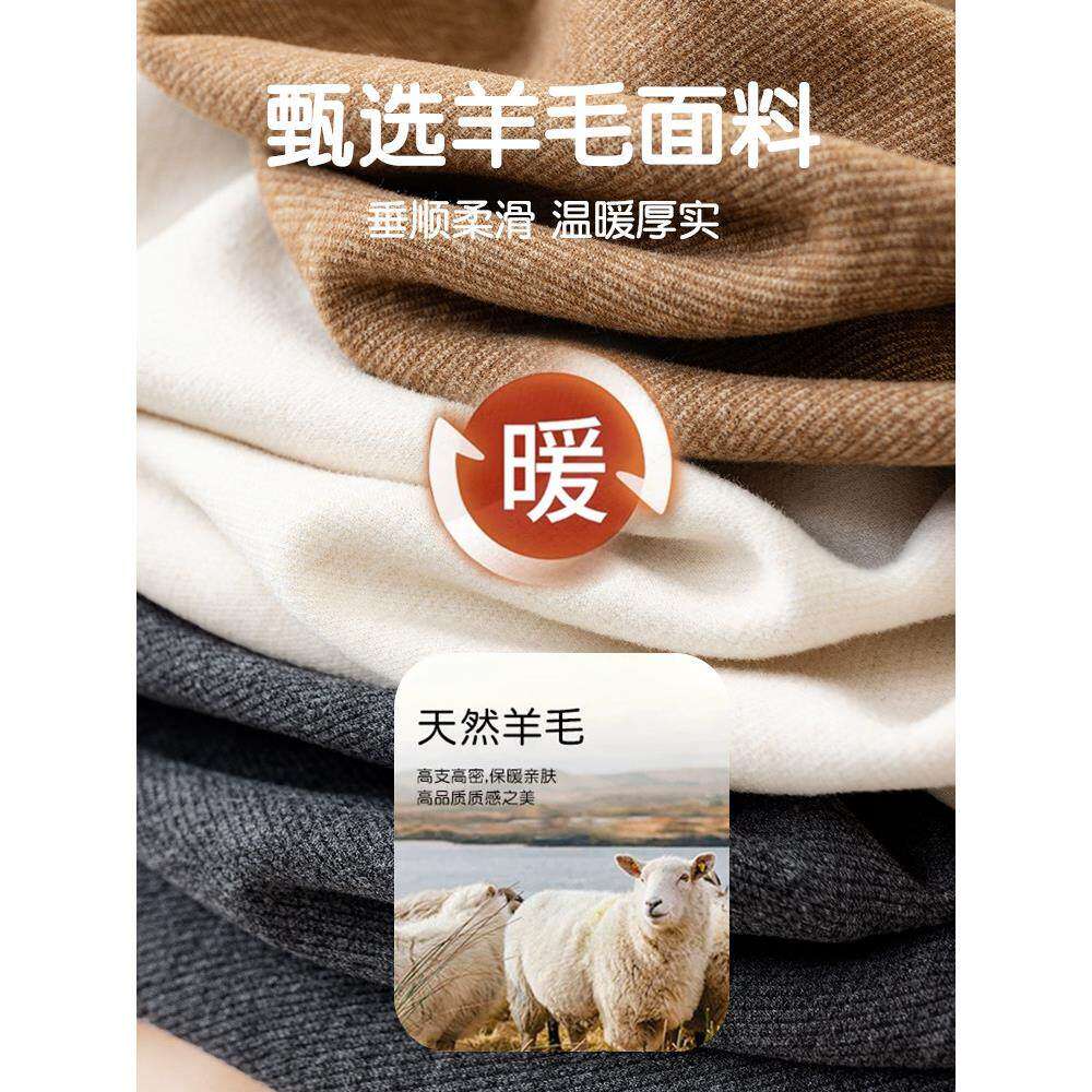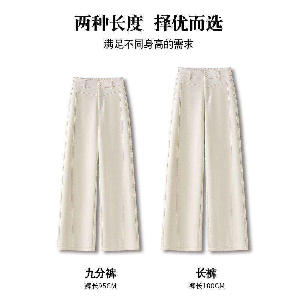 📚 拉夏贝尔米白色羊毛呢阔腿裤女冬季2025款羊绒九分裤子加绒直筒裤