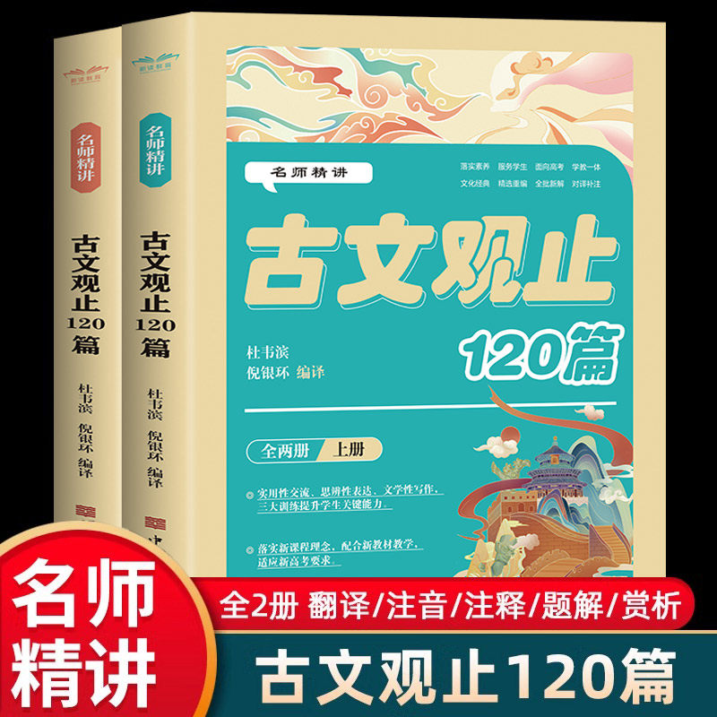📚 名师精讲古文观止120篇全套2册无障碍阅读 翻译注音注释题解赏析古文观止正版小学初中生必读语文知识集锦儿童文学国学经典书籍