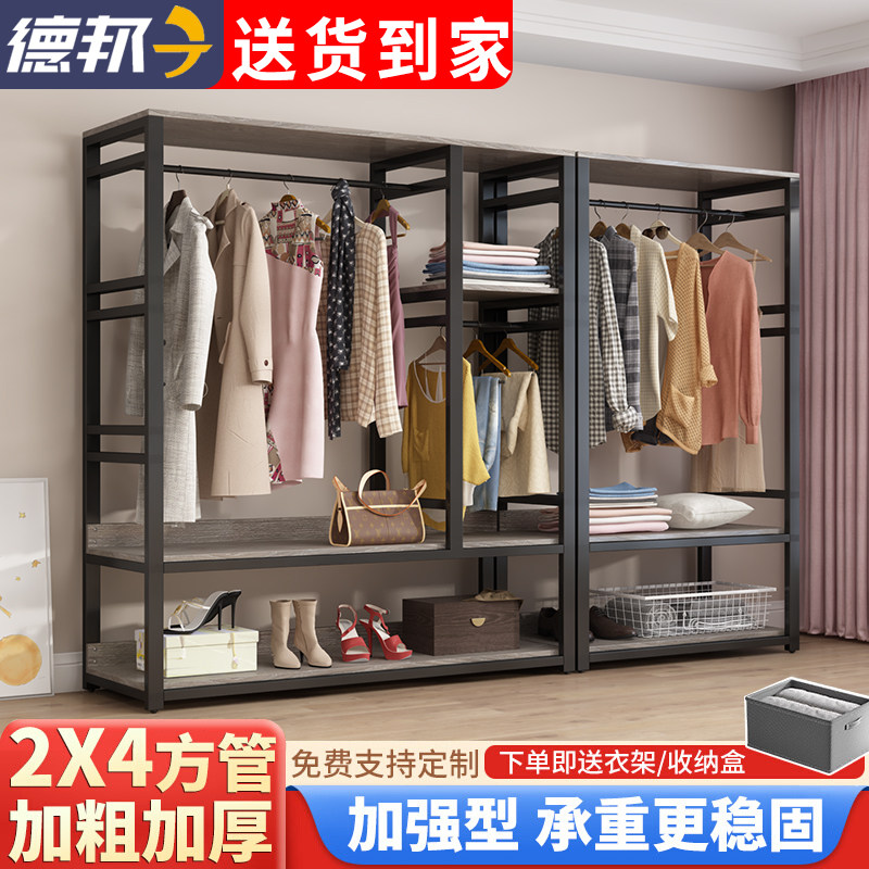 📚 简易钢木衣柜组合结实o耐用家用开放式衣帽间架子组装金属收纳衣