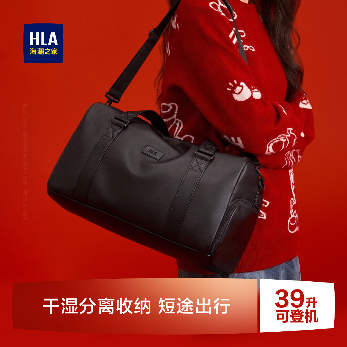 📚 HLA/海澜之家短途旅行包大容量出差手提女士健身轻便旅游包行李袋