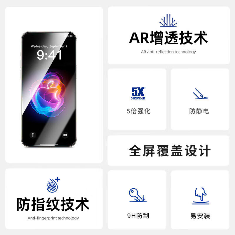 📚 ZAGG高清钢化膜iPhone16promax钢化膜AR增透超清iPhone17手机膜防指纹防静电mophie全屏高清防窥手机防蓝光