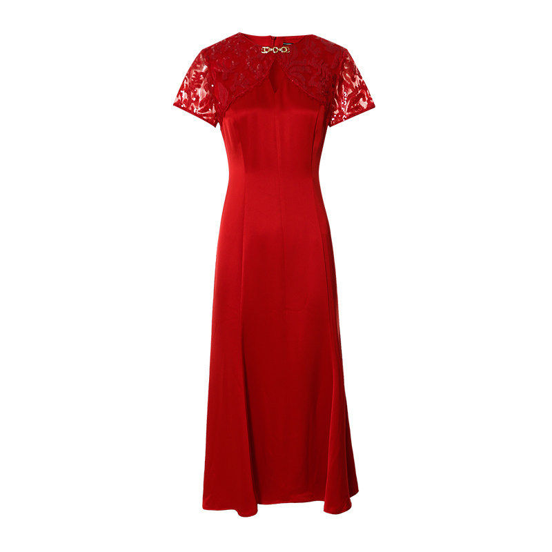 📚 [设计总监然姐]EITIE爱特爱蕾丝拼接镂空中式修身显瘦礼服连衣裙