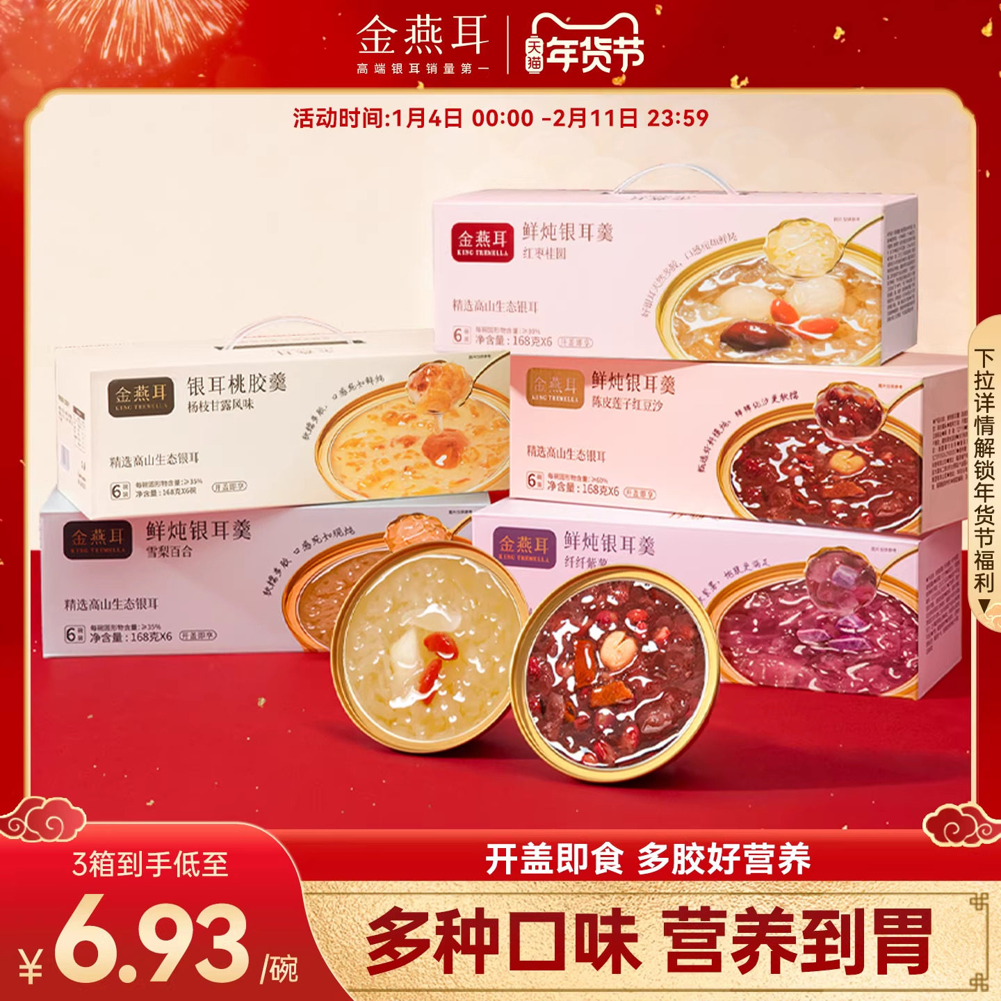 📚 金燕耳鲜炖银耳羹燕窝桃胶冲泡即食开盖免煮雪梨百合莲子汤旗舰店