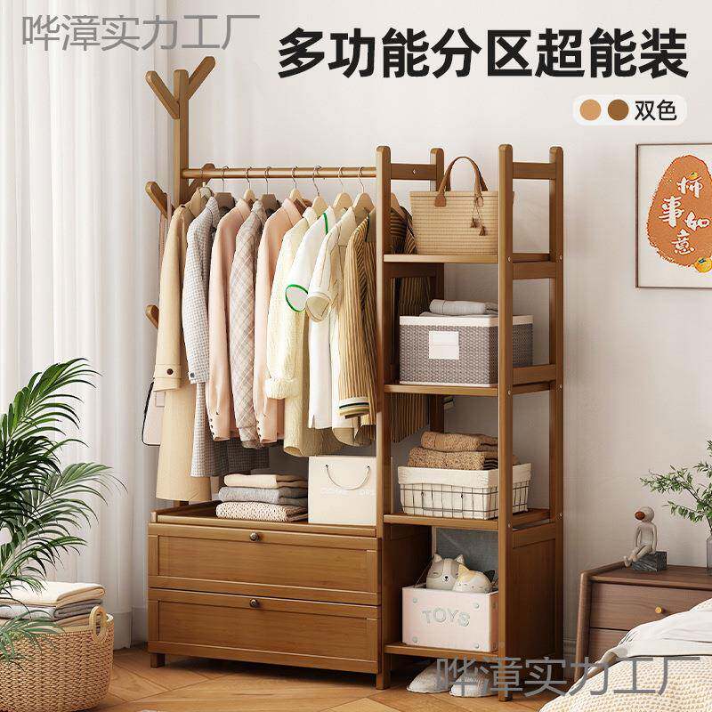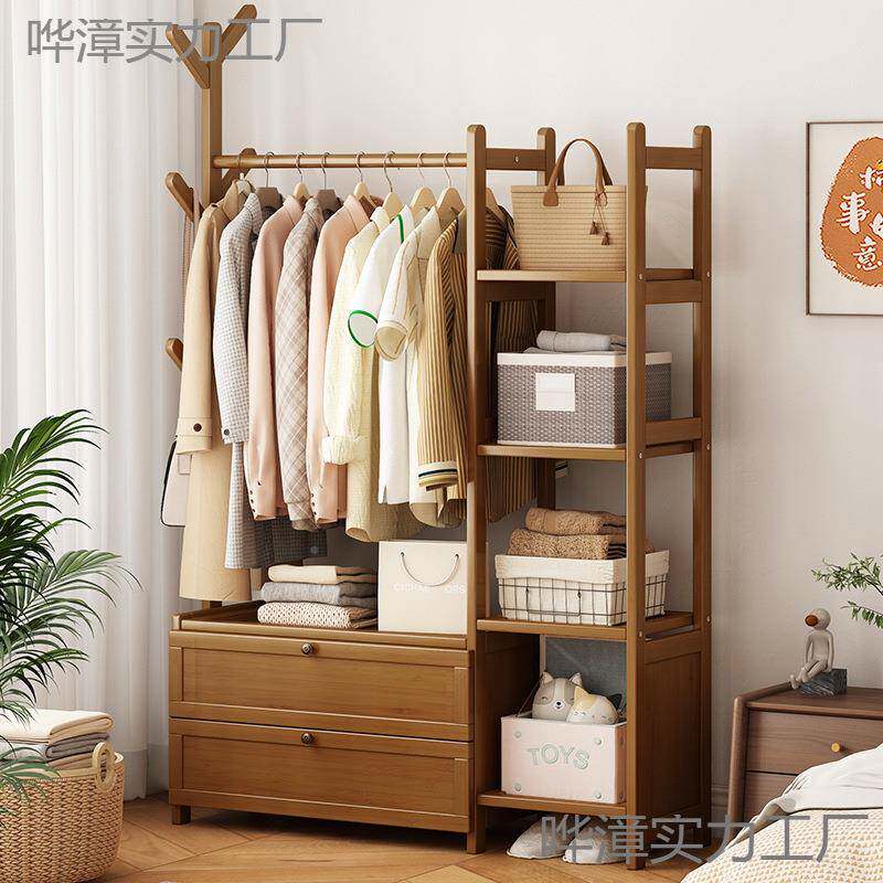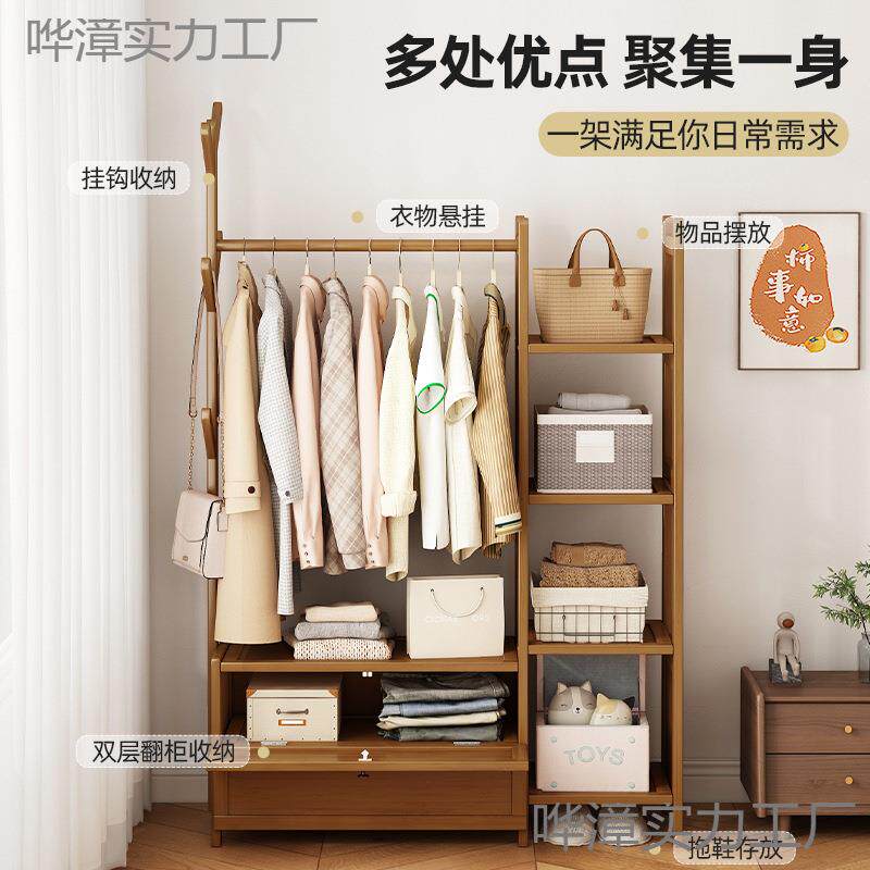 📚 XDH实木加挂衣卧架室内落粗地衣架新纳中式衣帽架带置物架抽屉室