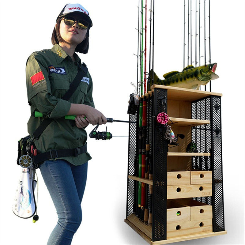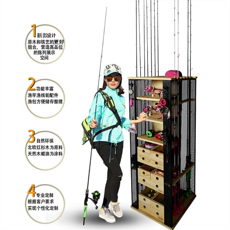 📚 爱路亚多功能渔具展架柜鱼竿店家用展示架收纳摆放高档台钓杆展示
