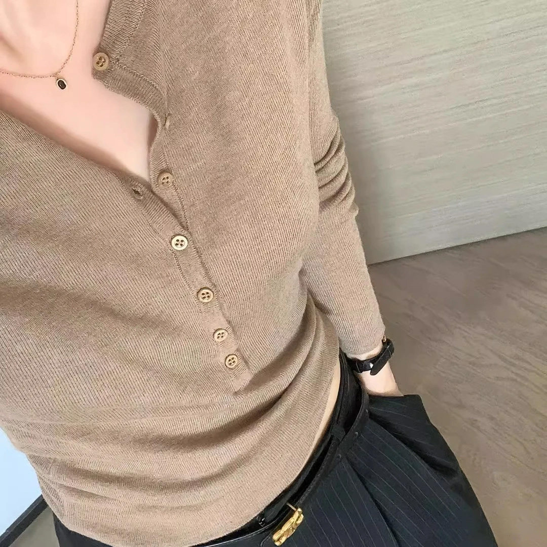 📚 高级优雅羊毛纽扣半开衫上衣套头女洋气秋冬新款软糯红色打底毛衣