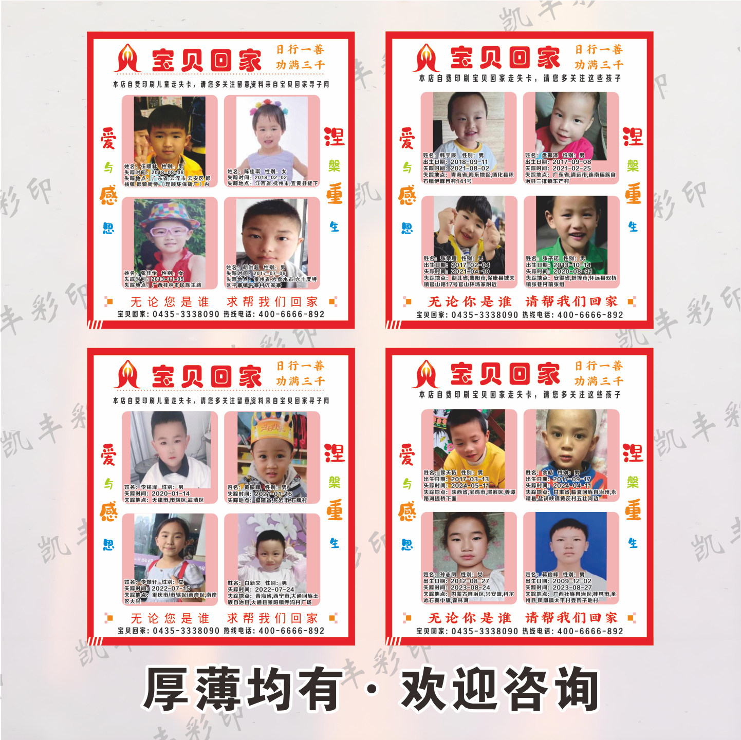 📚 2025宝贝回家公益卡定制售后卡贴纸外卖卡新规卡片感谢卡寻人启事