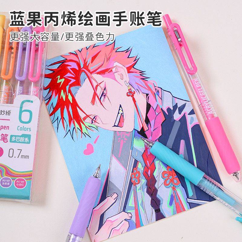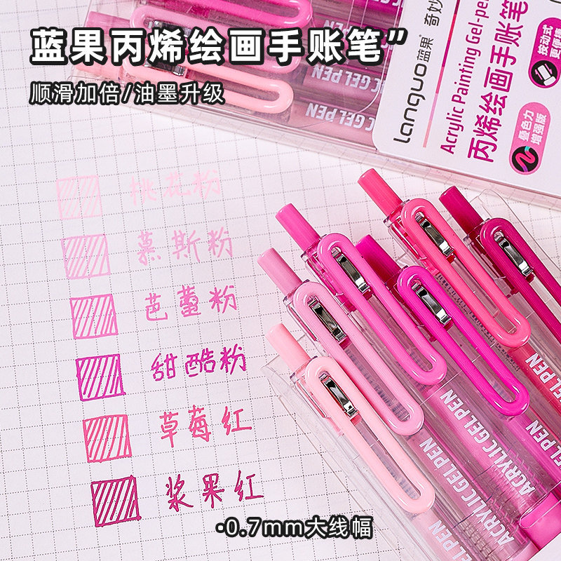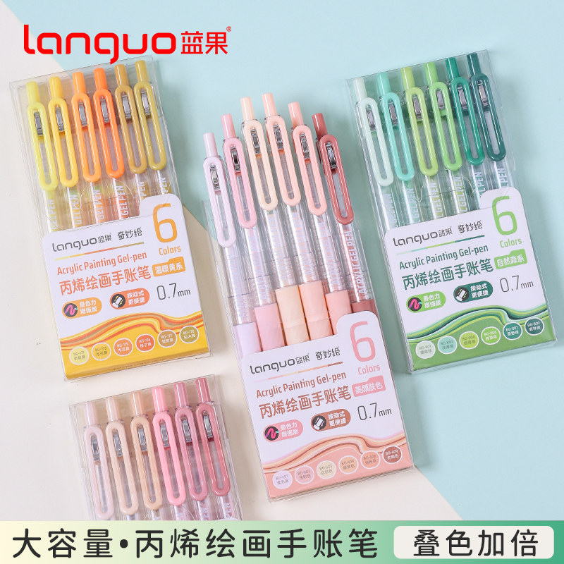 📚 蓝果丙烯绘画手帐笔按动90色彩色中性笔手账多色大容量可叠色ins高颜值学生专用彩笔做笔记标记涂鸦画画美术