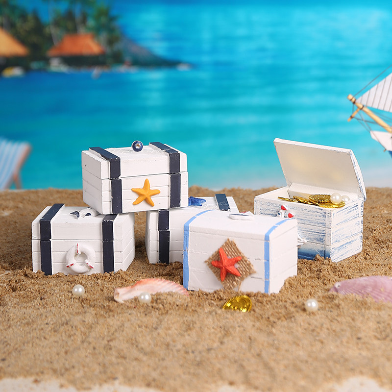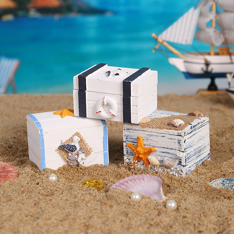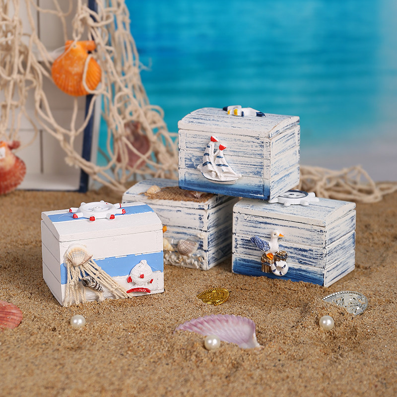 📚 地中海木质首饰盒随身便携儿童珠宝收纳小木盒迷你海洋装饰小宝箱