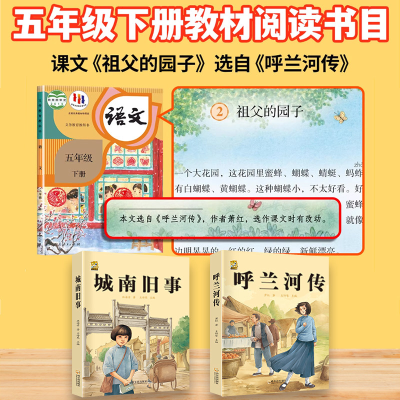 📚 城南旧事呼兰河传小学生版五年级下册必读的课外书快乐读书吧萧红著正版原著林海音完整四年级下册课外书人教版阅读书籍