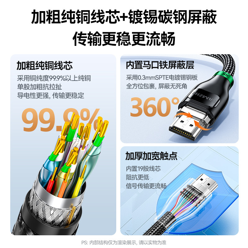 📚 山泽hdmi线高清2.1连接8k电脑显示器视频电视机顶盒投影仪4K加长