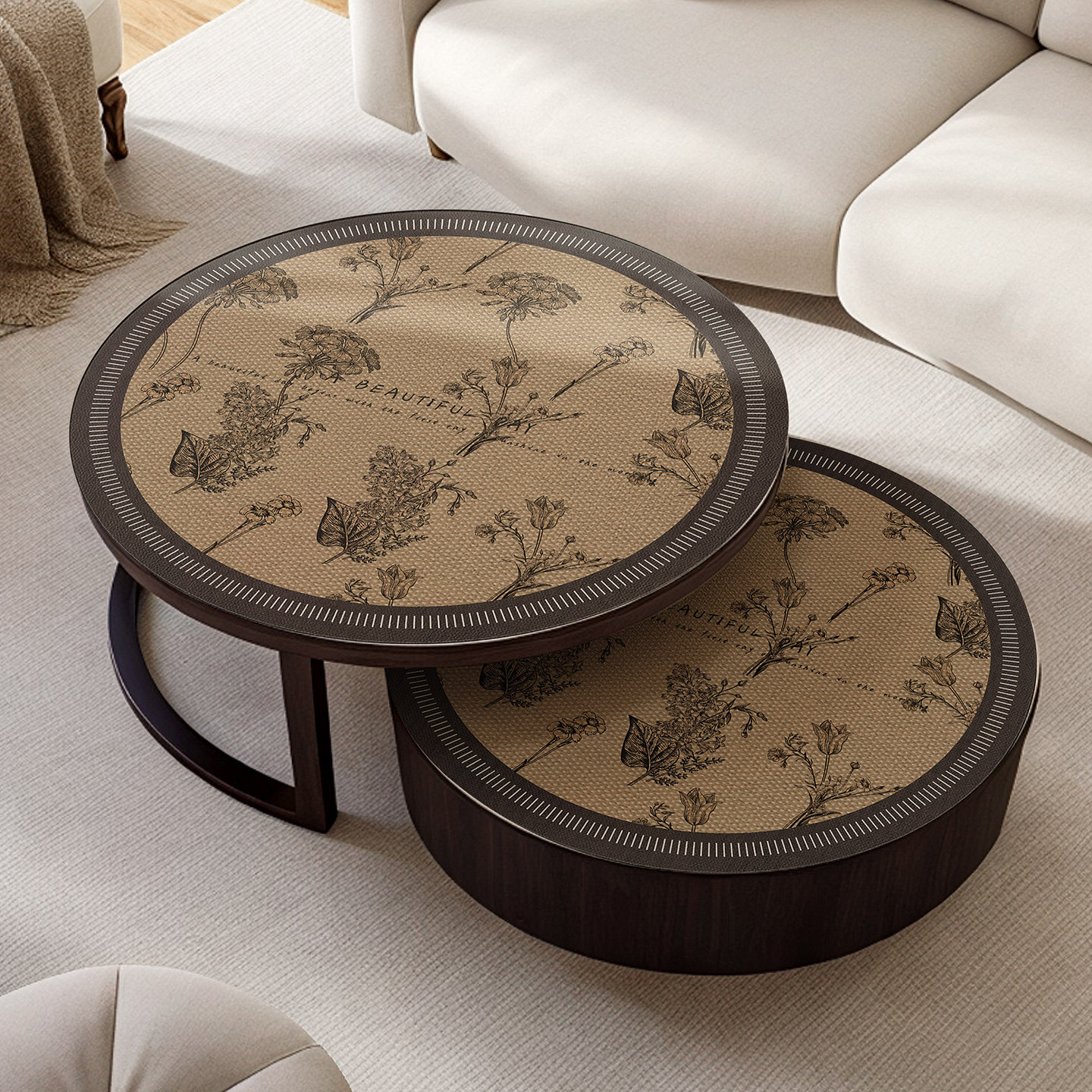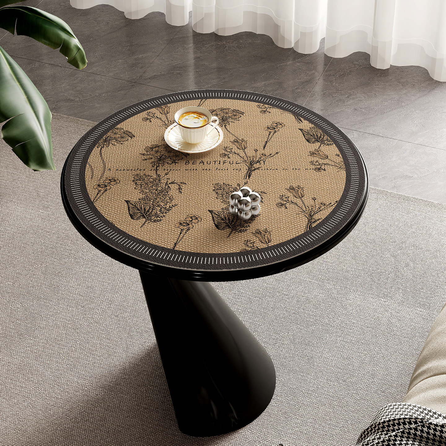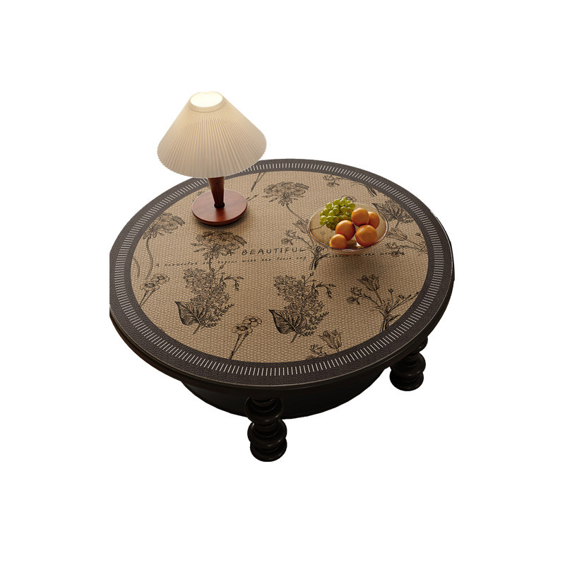 📚 中古风小茶几圆桌桌布高级感轻奢防水防油氛围感免洗皮革圆形桌垫