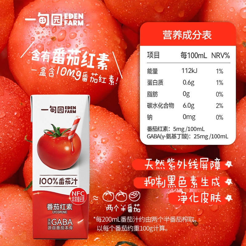 📚 一甸园100%NFC番茄汁 直榨非浓缩还原番茄红素纯蔬果汁200mL*10盒