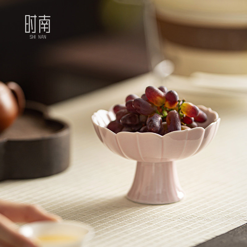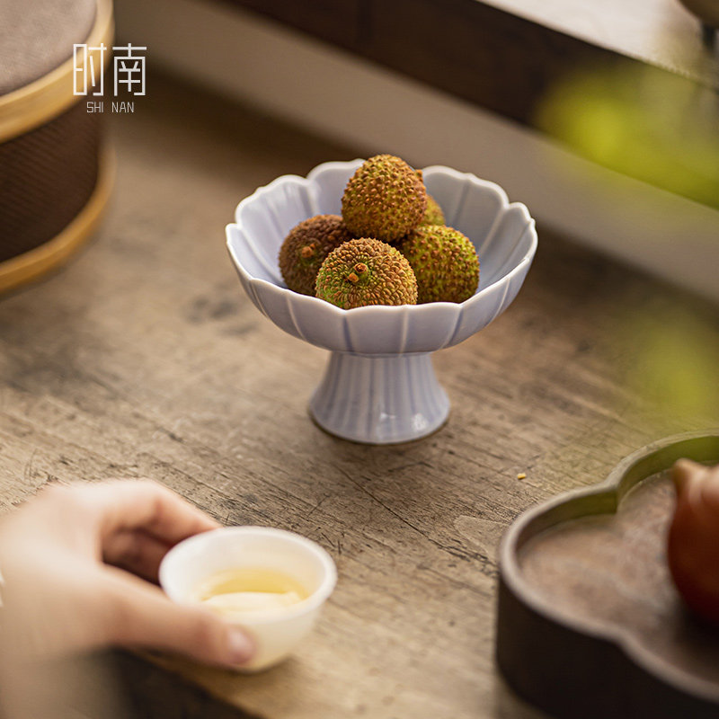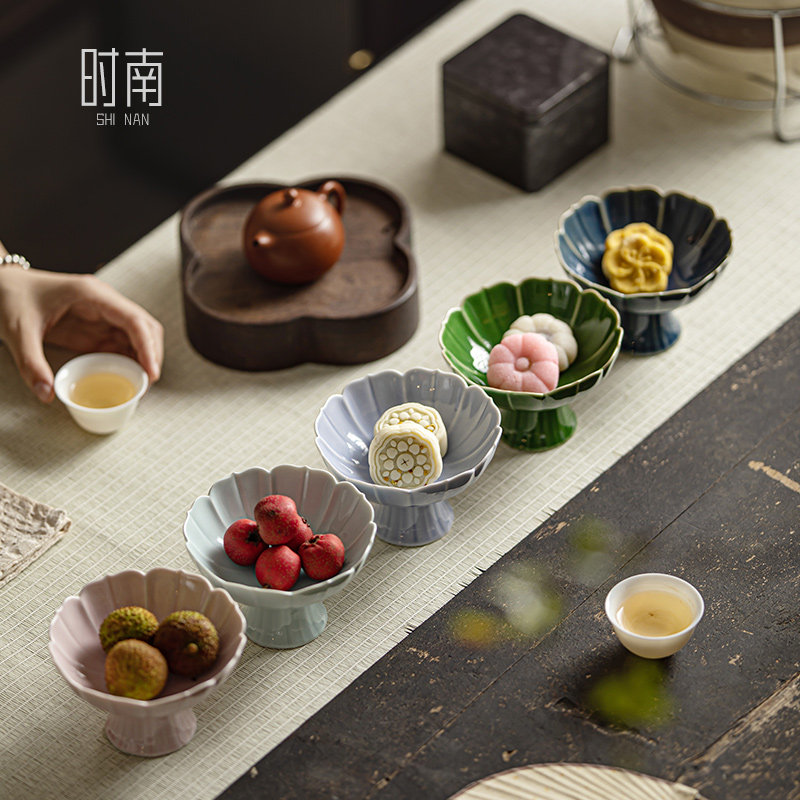 📚 莲花中式茶点盘陶瓷高脚水果盘精致点心盘茶店小吃干果甜品糕点盘