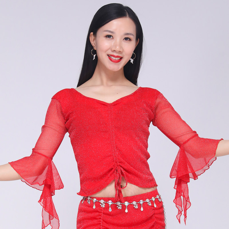 📚 2024新款春夏肚皮舞上衣大码肚皮舞练功舞蹈服上装表演短袖上衣