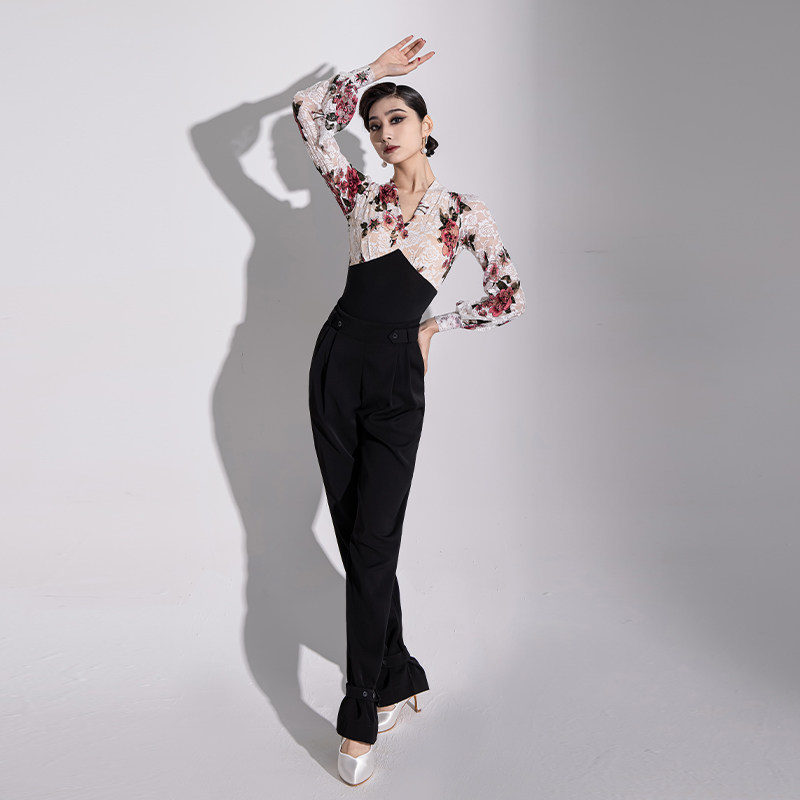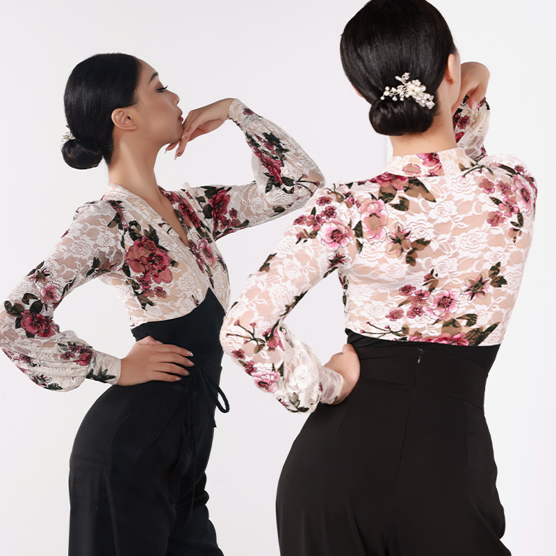 📚 名茵新款摩登舞上衣舞服时尚舞蹈服练功服国标舞蕾丝显瘦体服MD22