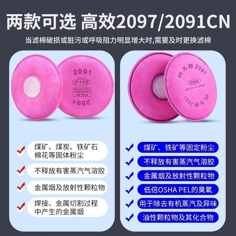 📚 2091过滤棉2097活性炭高级7502防尘电焊烟油烟异味P100级防毒滤芯