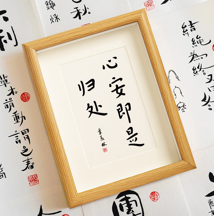 📚 心安即是归处客厅书法相框弘一师父字画摆件办公室禅意装饰品挂画