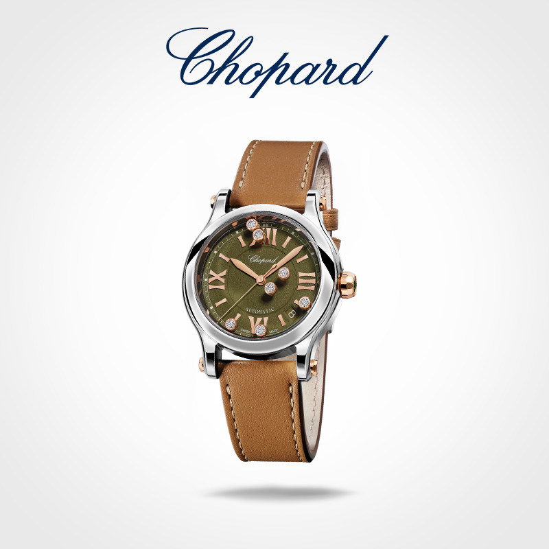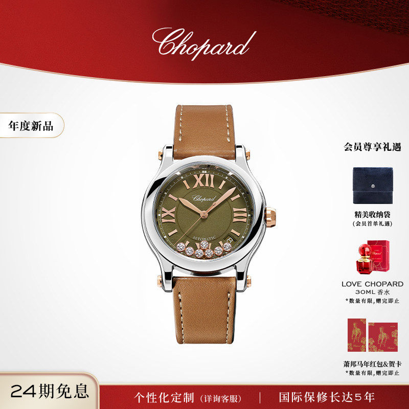 📚 Chopard萧邦间金36mm7钻机械卡其绿色腕表新年礼物送女友