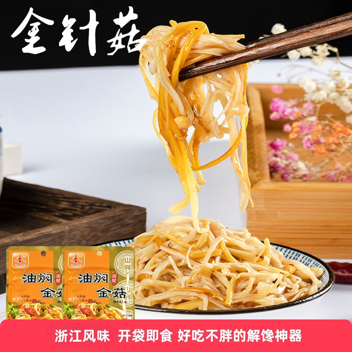📚 山民油焖金针菇80g*10袋开袋即食不辣香辣金针菇拌海蜇下饭开胃菜