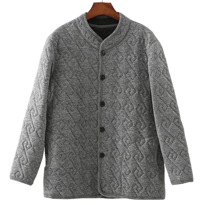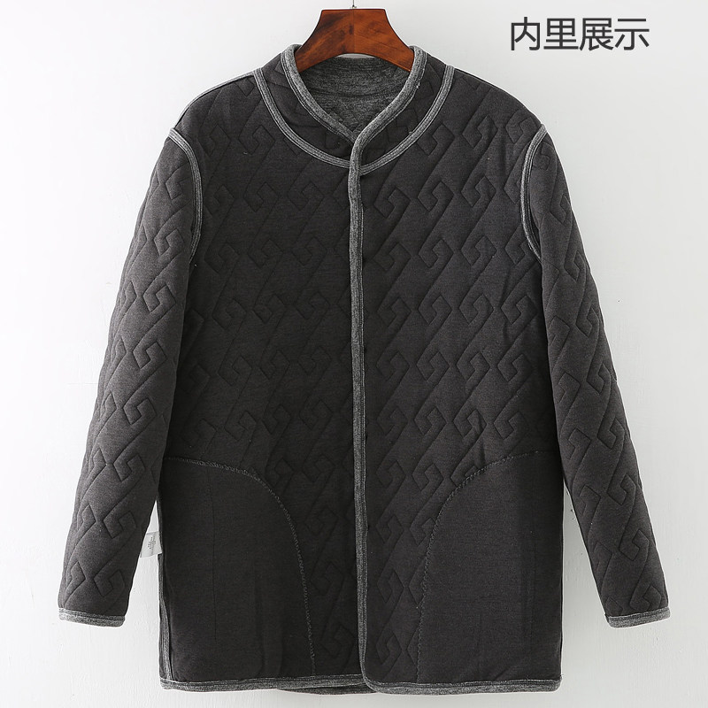 📚 中老年男士三层加厚柞蚕丝开衫保暖内衣爸爸开襟上衣棉袄厚冬棉服