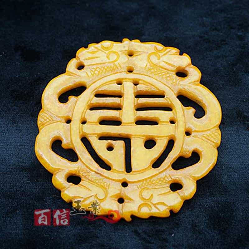 📚 雪花玉双龙寿字玉璧仿古做旧双面镂空雕刻玉佩玉坠民族风腰佩流苏